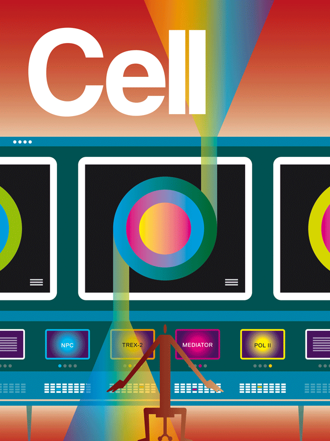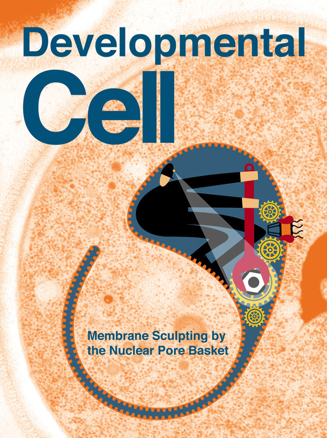 Membrane Sculpting by the Nuclear Pore Basket, Titelblattillustration, Thema: Mikrobiologie, Developmental Cell, Volume 33, Issue 3, 2015, Maryland Heights, Saint Louis (US)