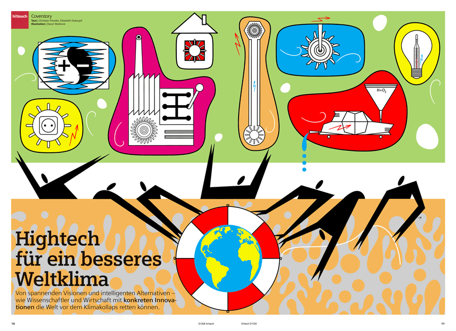 Hightech für ein besseres Weltklima, Magazinillustration, Thema: Innovative Visionen gegen Klimakollaps, 2004