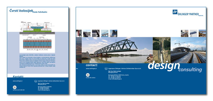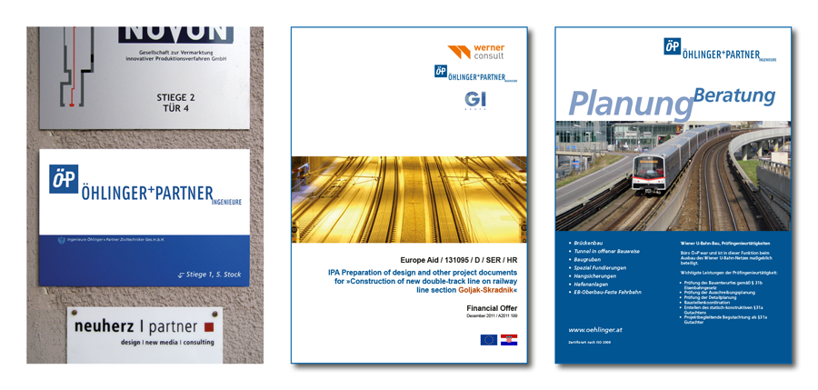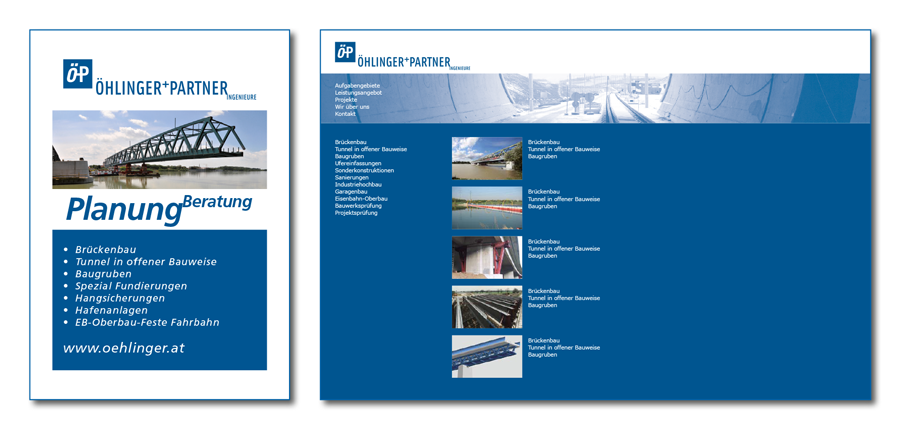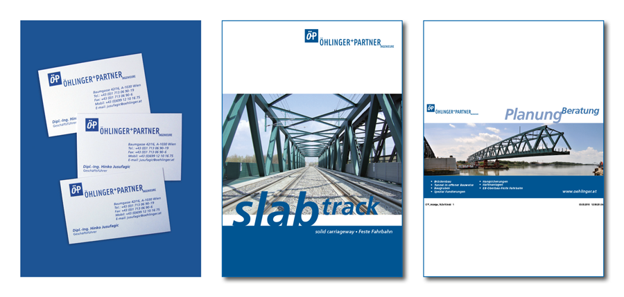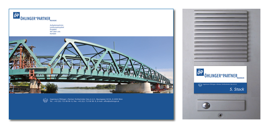 Die Bauingenieure Öhlinger+Partner sind in fachlichen Kreisen ein bekanntes Statikerbüro in Wien. Dessen Mitarbeiter pflegen mit einem enormen spezialistischen Wissen und unbegrenzten Enthusiasmus den Ingenieurgeist des Projektierens anspruchsvoller Tiefbauprojekte. davor markovic design entwickelt seit 2009 mit einem klaren Konzept die grafische Erscheinung dieses Unternehmens.