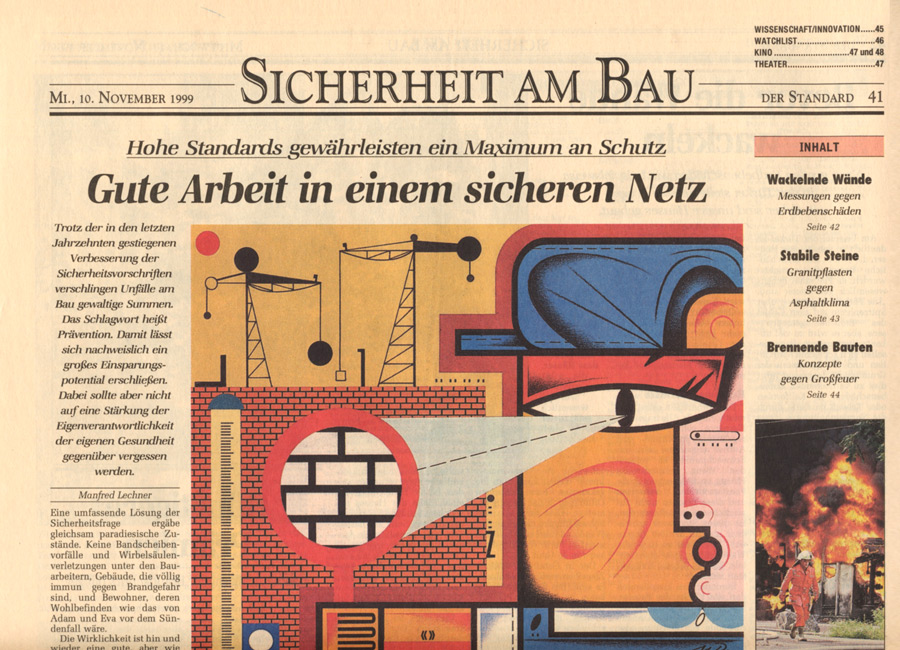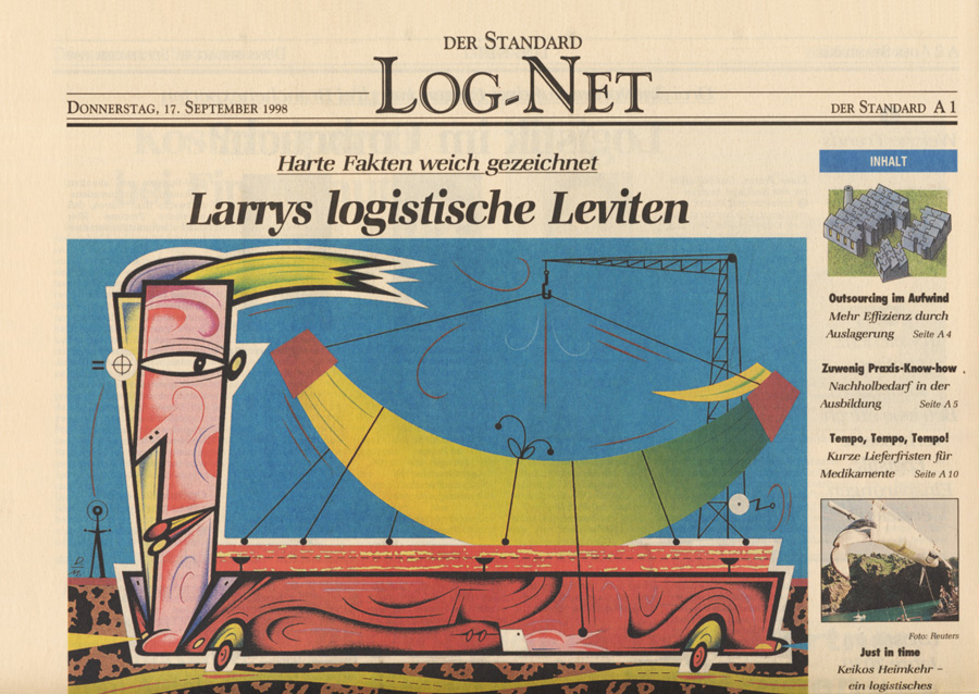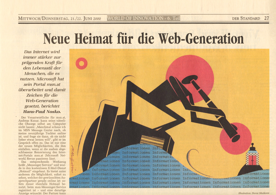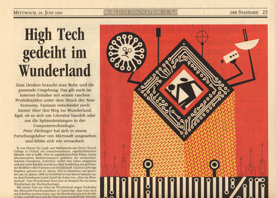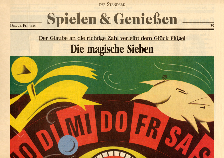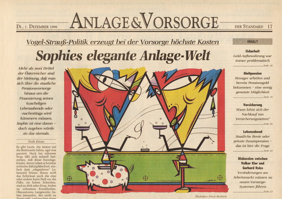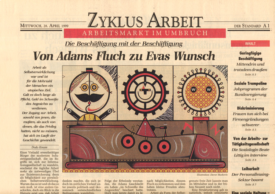 Auswahl von Illustrationen für die österreichische unabhängige Tageszeitung Der Standard, mit der sich im Laufe der 90-er Jahre eine intensive Zusammenarbeit entwickelte. Der Schwerpunkt lag dabei auf dem Illustrieren von Themen für verschiedene Verlagsbeilagen. Einige der Illustrationen wurden bei internationalen Grafikdesign-Ausstellungen präsentiert und im Jahr 2001 mit dem Double Merit from the Art Directors Club New York gekrönt. Art Director: Brigitta Bernart-Skarek.